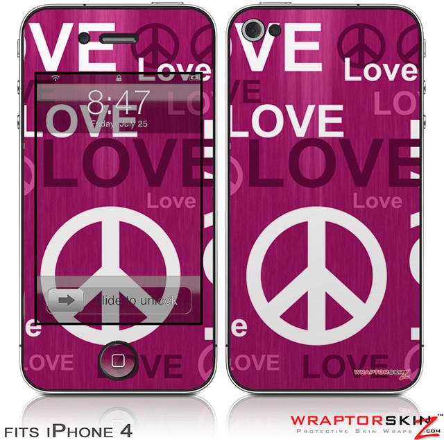 iPhone 4 Skin - Love and Peace Hot Pink (DOES NOT fit newer iPhone 4S)