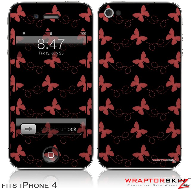 iPhone 4 Skin - Pastel Butterflies Red on Black (DOES NOT fit newer iPhone 4S)