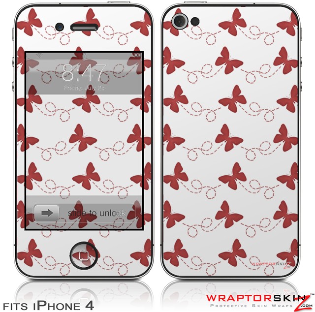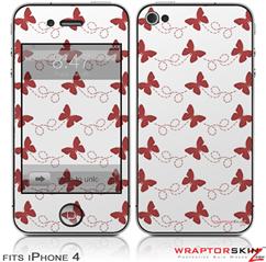 iPhone 4 Skin - Pastel Butterflies Red on White (DOES NOT fit newer iPhone 4S)