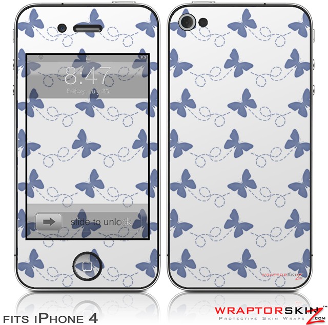 iPhone 4 Skin - Pastel Butterflies Blue on White (DOES NOT fit newer iPhone 4S)