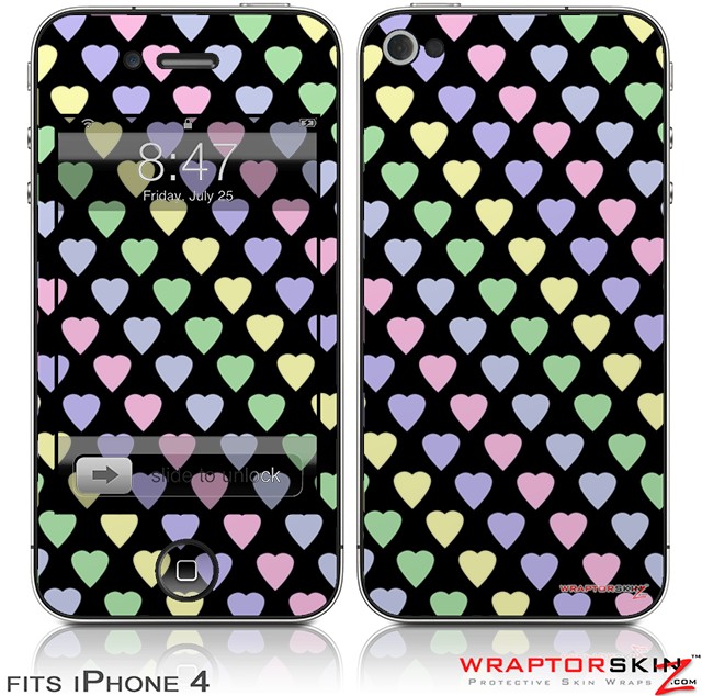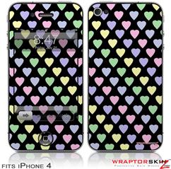 iPhone 4 Skin - Pastel Hearts on Black (DOES NOT fit newer iPhone 4S)