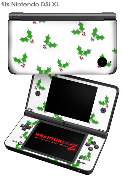 Nintendo DSi XL Skin Christmas Holly Leaves on White