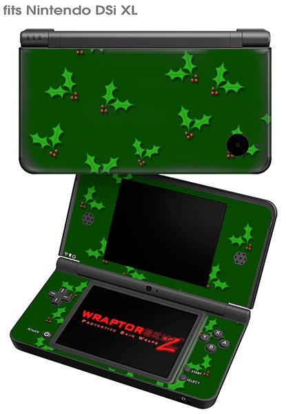 Nintendo DSi XL Skin Christmas Holly Leaves on Green