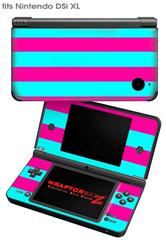 Nintendo DSi XL Skin Kearas Psycho Stripes Neon Teal and Hot Pink