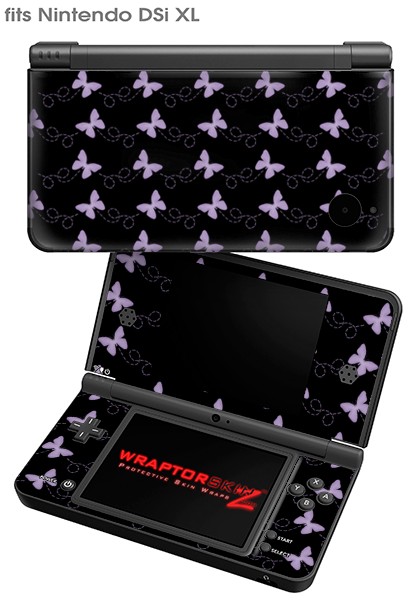 Nintendo DSi XL Skin Pastel Butterflies Purple on Black