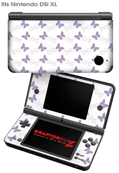 Nintendo DSi XL Skin Pastel Butterflies Purple on White