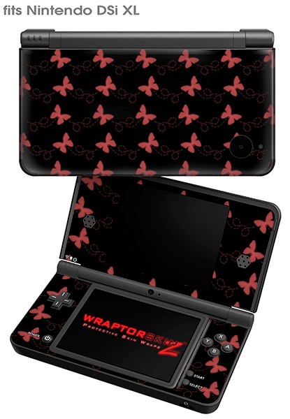 Nintendo DSi XL Skin Pastel Butterflies Red on Black
