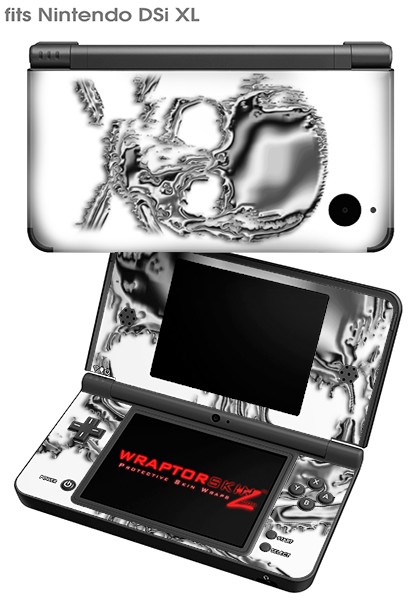 Nintendo DSi XL Skin Chrome Skull on White