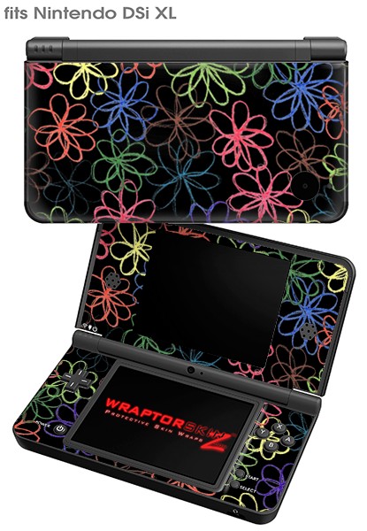 Nintendo DSi XL Skin Kearas Flowers on Black