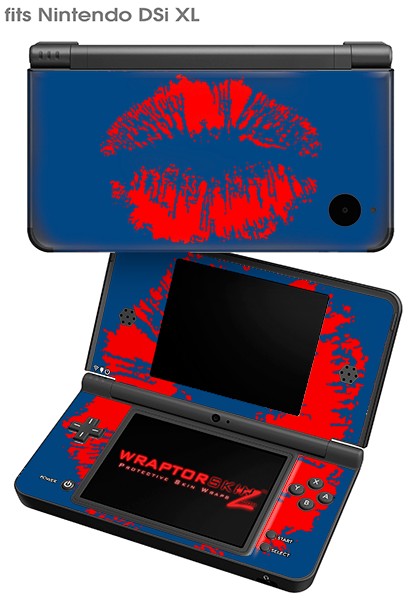 Nintendo DSi XL Skin Big Kiss Red on Midnight Blue