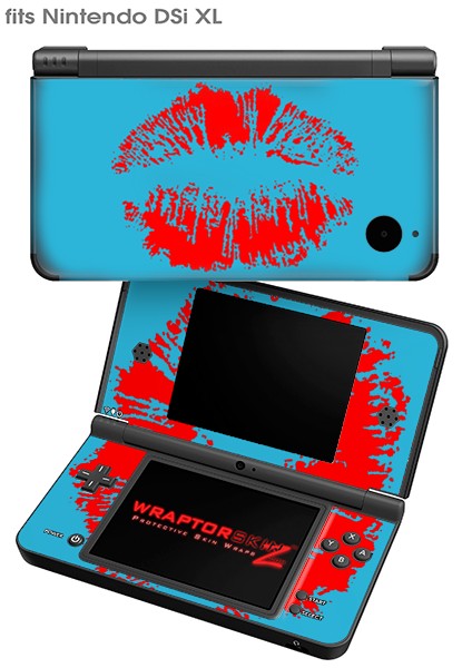 Nintendo DSi XL Skin Big Kiss Red on Blue