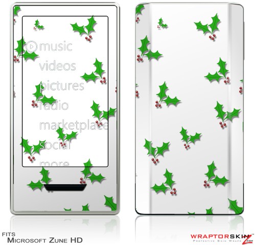 Zune HD Skin Christmas Holly Leaves on White