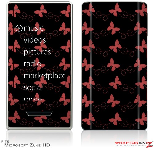 Zune HD Skin Pastel Butterflies Red on Black