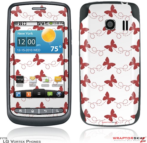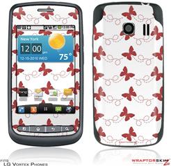 LG Vortex Skin Pastel Butterflies Red on White