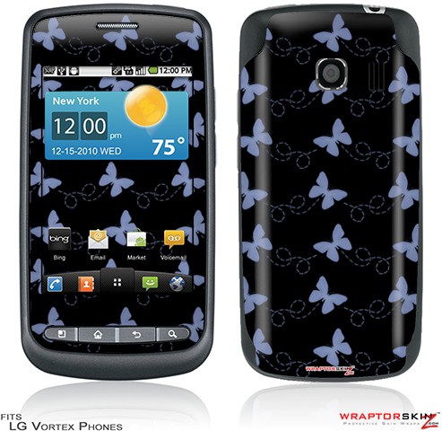 LG Vortex Skin Pastel Butterflies Blue on Black