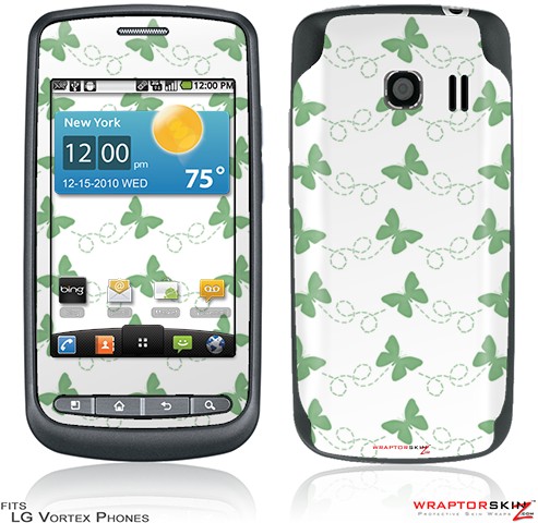 LG Vortex Skin Pastel Butterflies Green on White