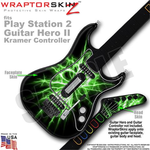PS2 Guitar Hero II Kramer Lightning Green Faceplate Skin