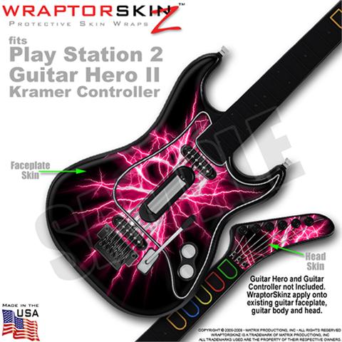 PS2 Guitar Hero II Kramer Lightning Pink Faceplate Skin